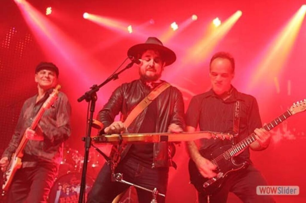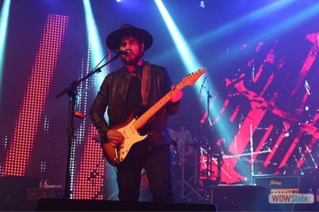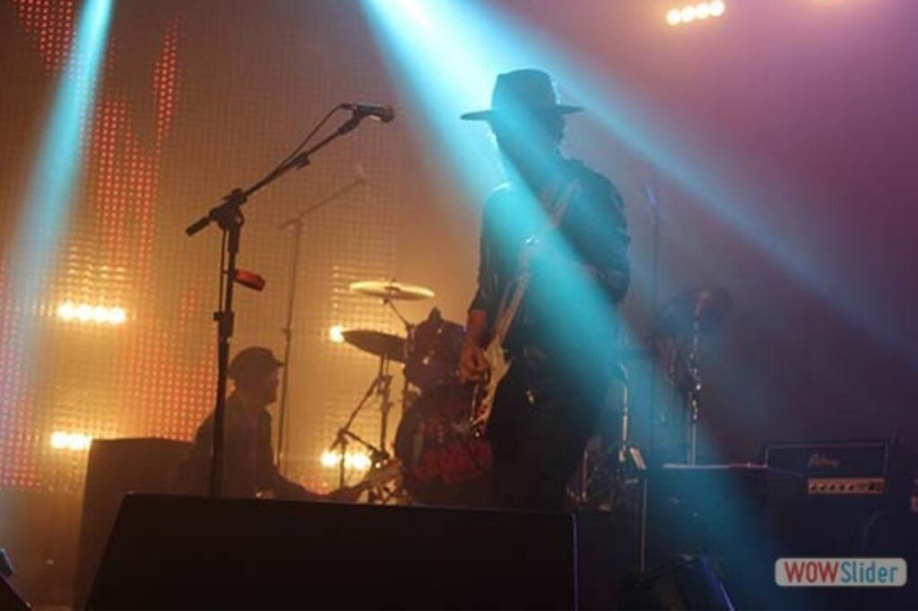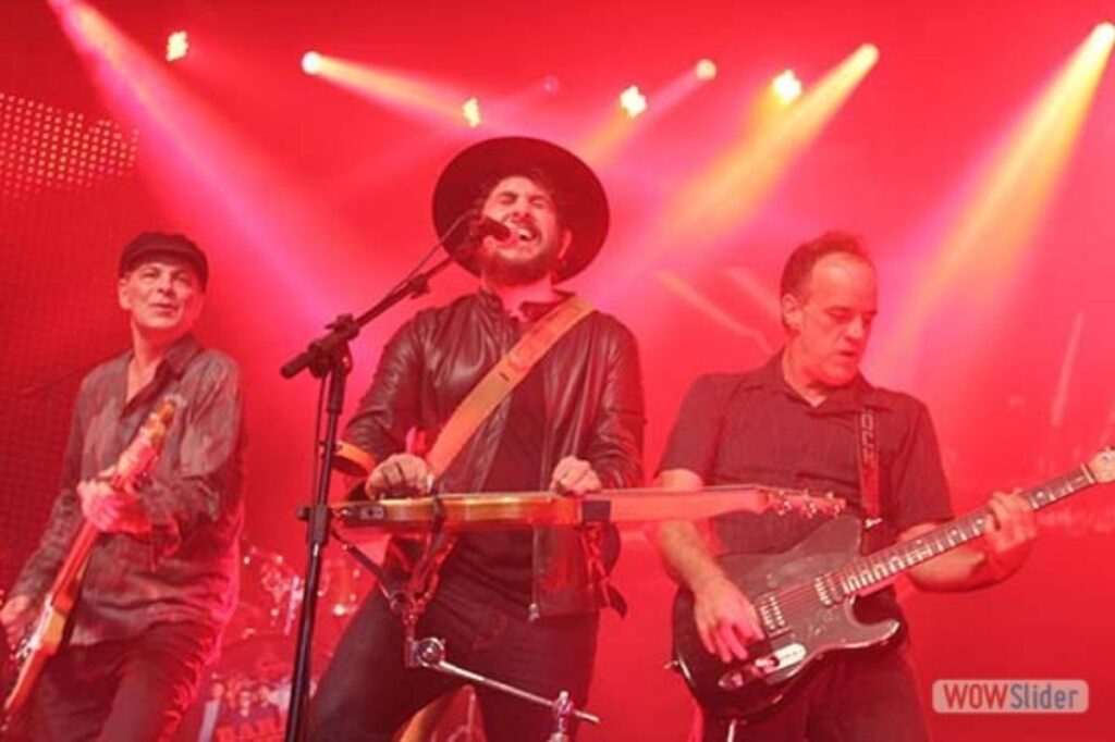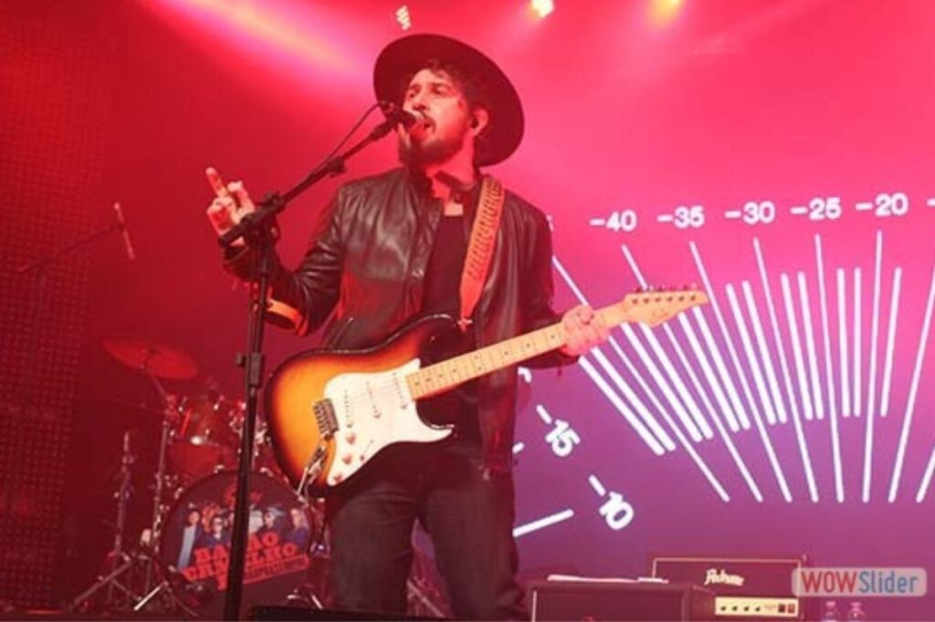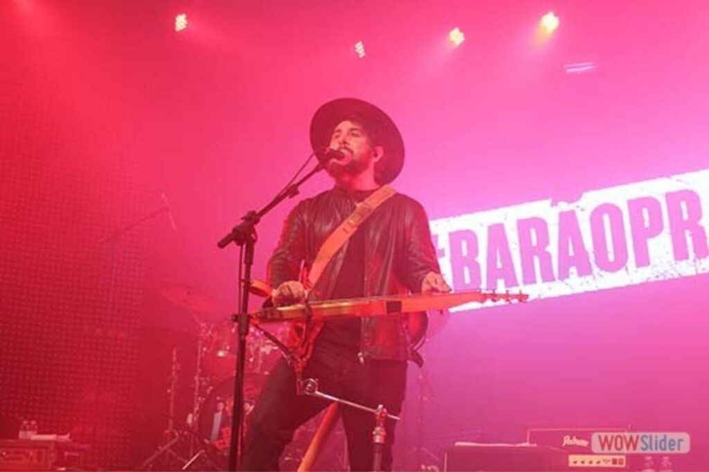 Já de saída, Rodrigo Suricato aparece no palco tocando uma lap steel guitar, imediatamente nos lembra que não é simplesmente um guitarrista/vocalista, mas um multi-instrumentista, com muitos recursos que pode trazer à banda novas sonoridades e texturas antes inimagináveis.